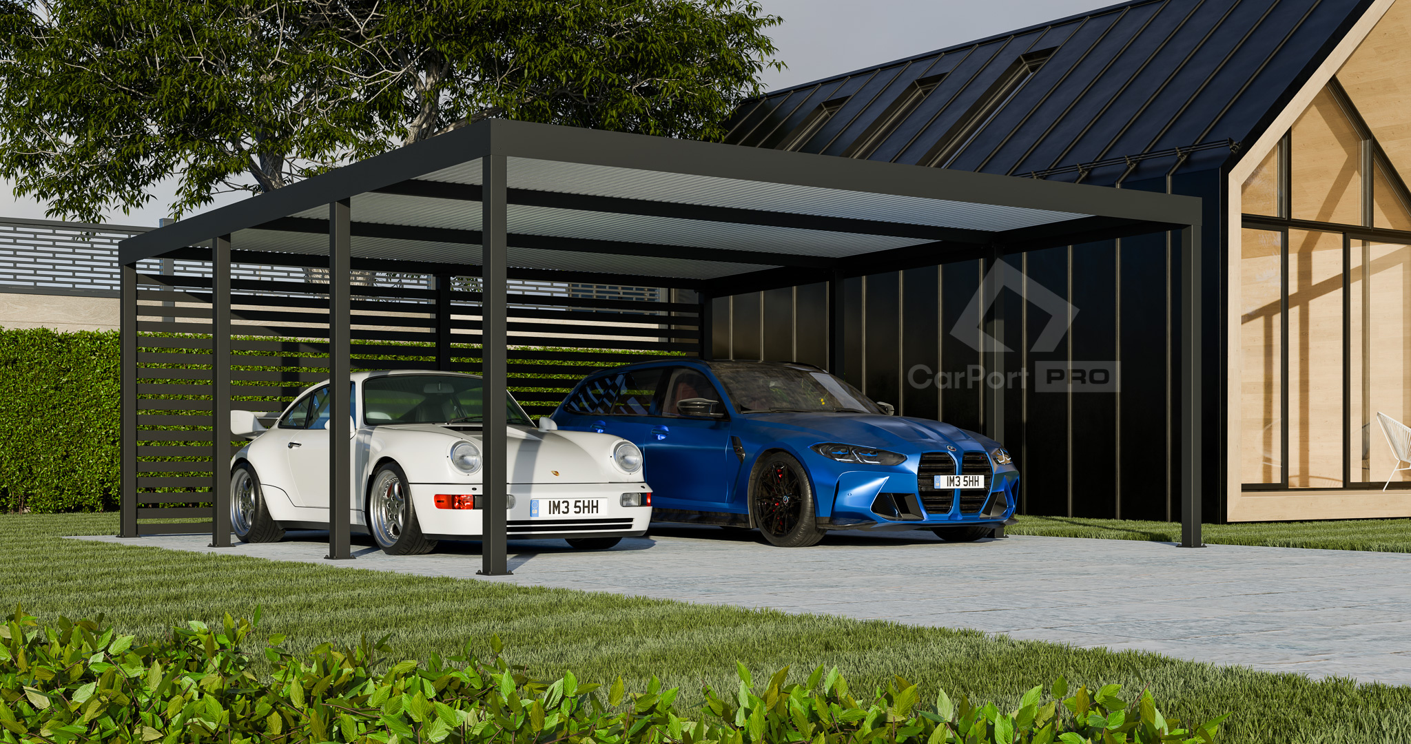 CarPort PREMIUM – wiata samochodowa 6×5,5 – zabudowa – antracyt CP107