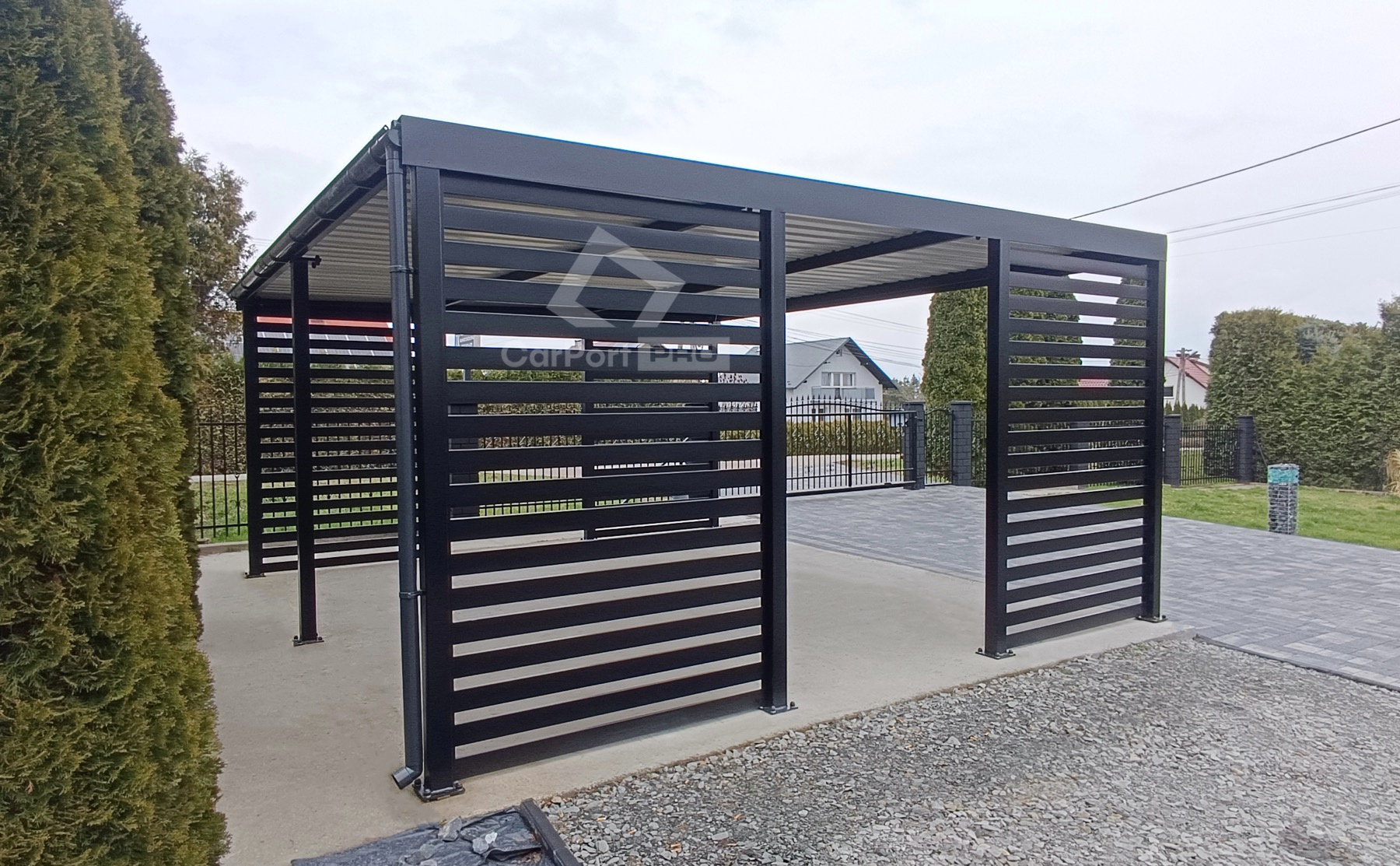 - Cała konstrukcja carportu malowana metodą proszkową