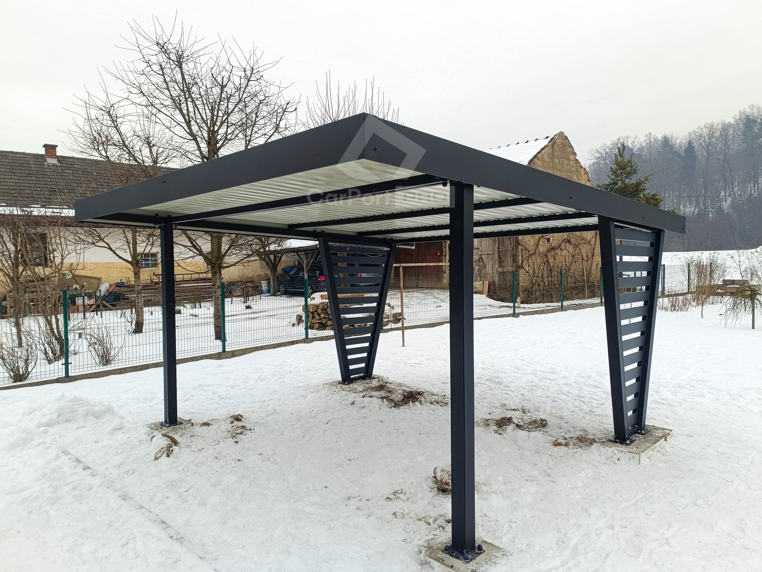 - Cała konstrukcja carportu malowana metodą proszkową