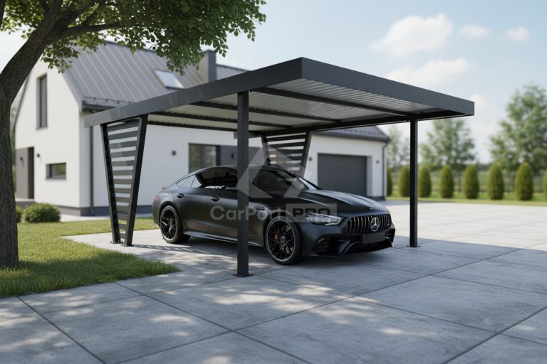Carport V PREMIUM 5×4,7m – Wypełnienie panelami – Wiata samochodowa – antracyt CP154