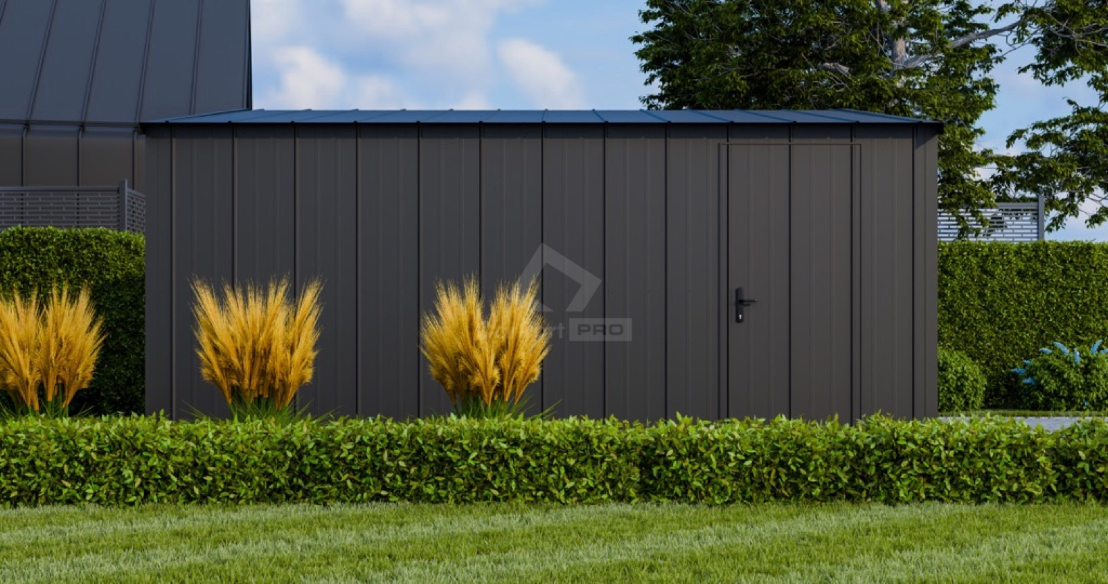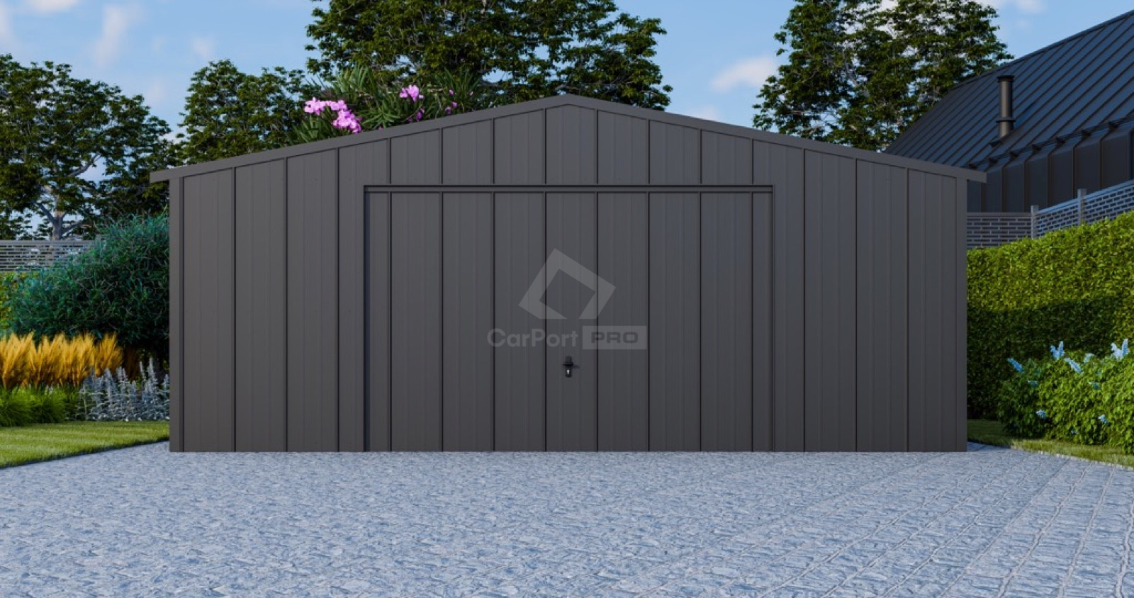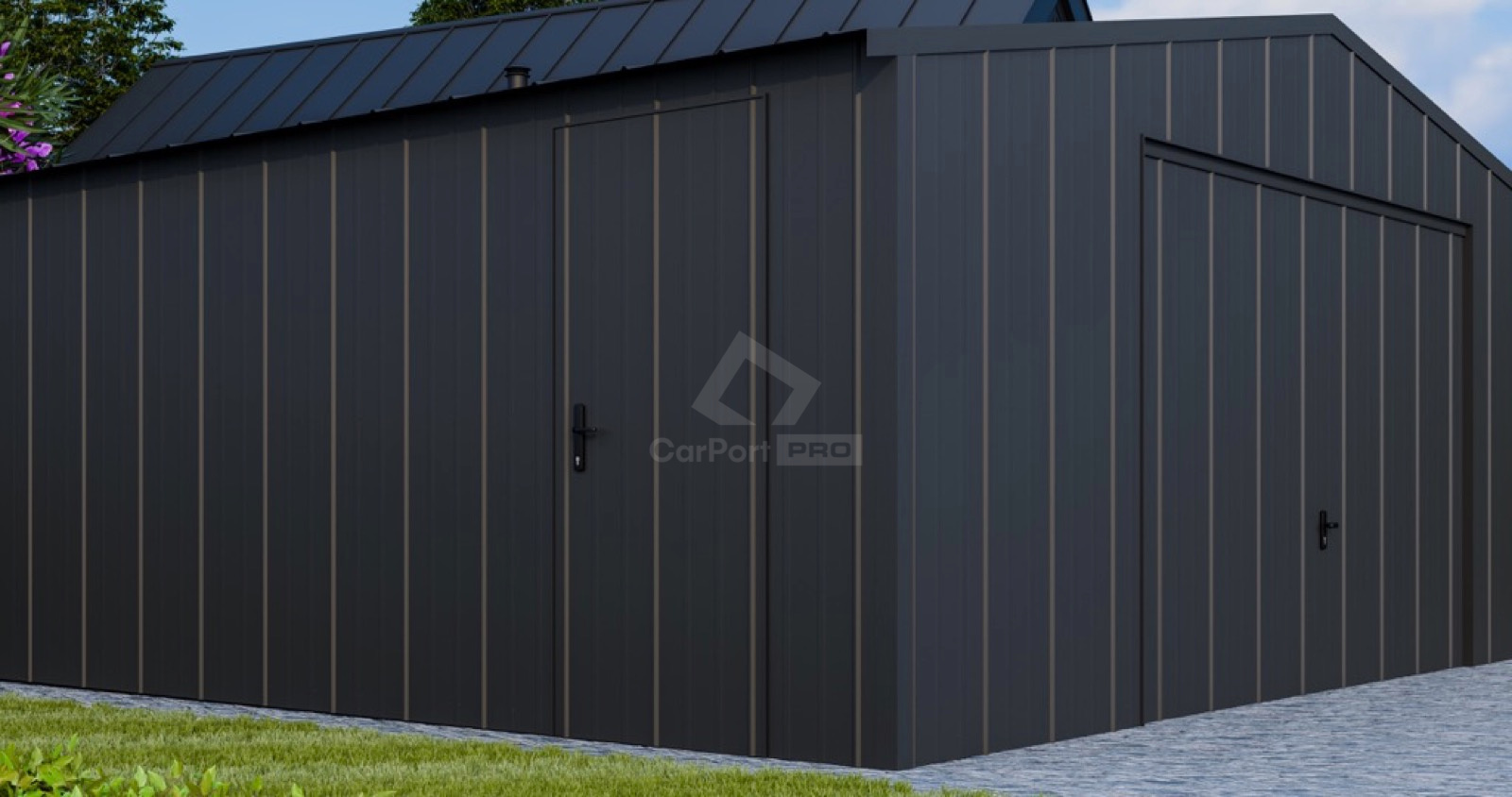 - dach: dwuspadowy, pokryty blachą na rąbek, kolor: antracyt mat 7016